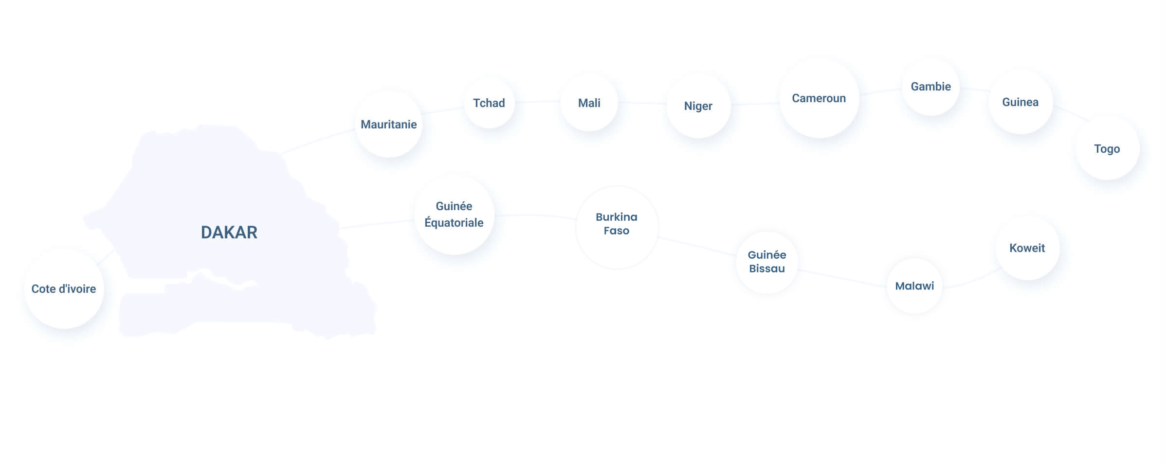Cartographie de la présence du CDE dans plusieurs pays de la CEDEAO, au Koweït et au Liban